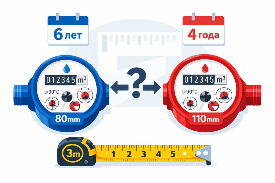 Критически важная деталь: При покупке проверяйте дату первичной поверки в паспорте счетчика прямо в магазине! Если прибор пролежал на складе 1,5–2 года, межповерочный интервал уже частично истек. Например, счетчик для холодной воды с датой изготовления 2024 год уже «потратил» 2 года из своих 6 лет — следующая поверка потребуется в 2030 году, а не в 2032-м.